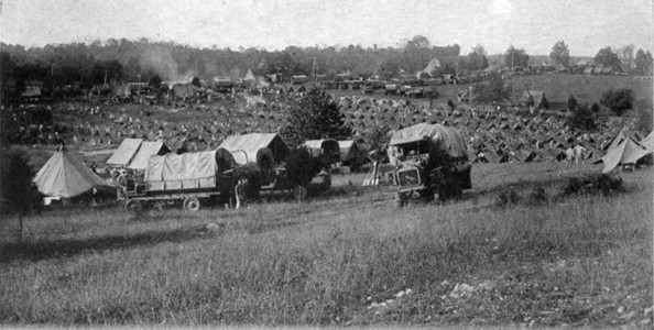 U. S. Marines on Cedar Creek Battlefield. The 1923 maneuvers of the U. S. Marines of Quantico, Va. include a tour of the Shenandoah Valley, September 17th, 3,500 Marines.......encamped on the famous battlefield of Cedar Creek, Va., where on October 19,1864 the Confederate under Gen. Jubal A. Early first won victory and were then defeated by the Federal forces under Gen. Philip H. Sheridan. This picture appeared on a postcard published at the Shenandoah Publishing House, Strasburg, Virginia. |