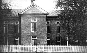 Strasburg Academy, founded by Peter Stover, the founder of Strasburg. It was built about 1803. This school was located on the south side of High street west of the intersection with Depot (Fort) street. It was replaced by a new structure about 1926. This picture was likely taken not long before the structure was demolished. |